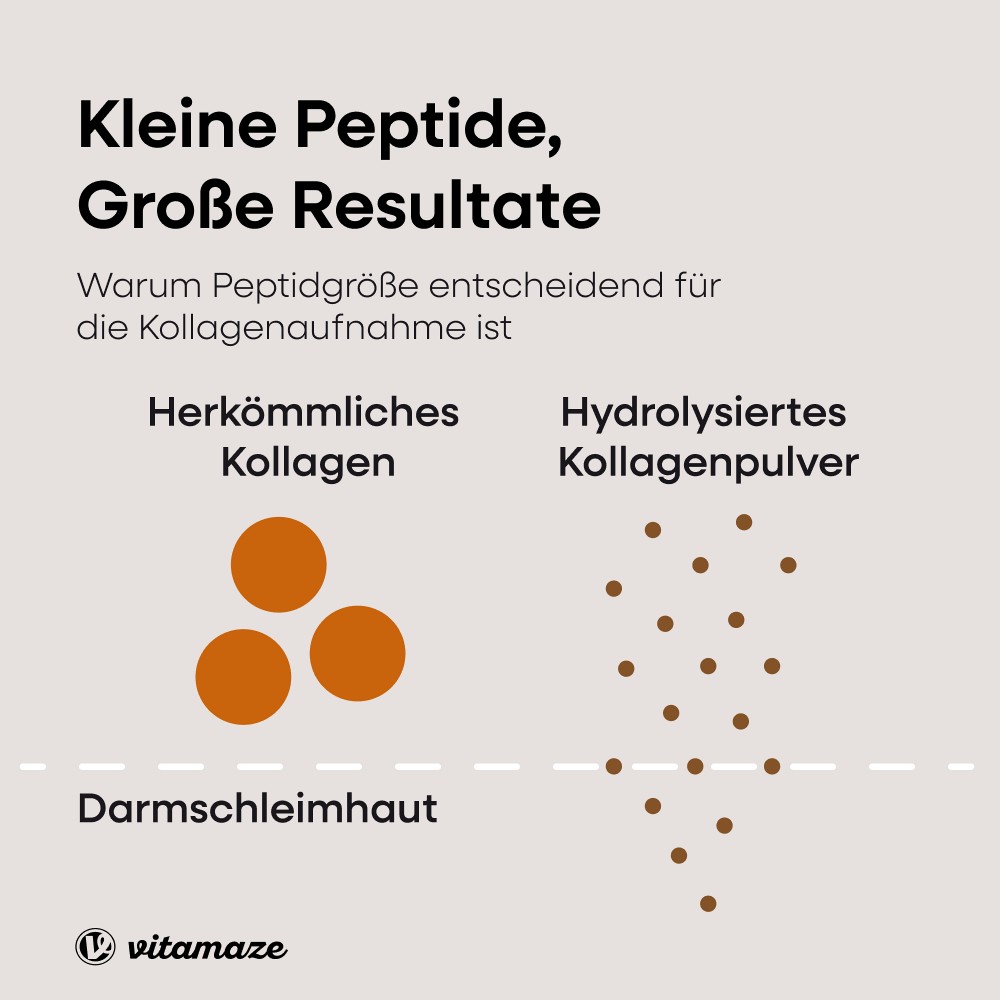 - Kombination aus Kollagen-Hydrolysat (Typ 1 und 3), Biotin und Vitamin C