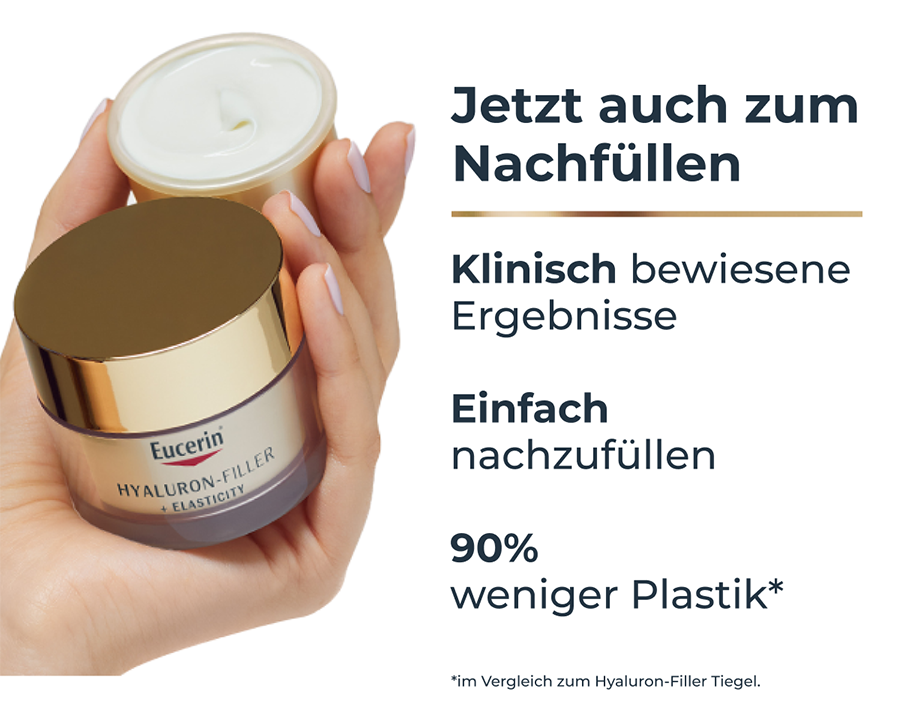 Die Nachfüllkapsel ist mit allen Eucerin-Tiegeln kompatibel und reduziert den Plastikverbrauch um 90 %.