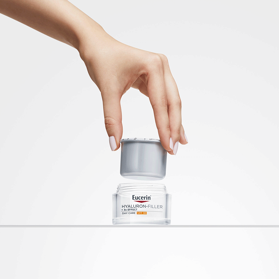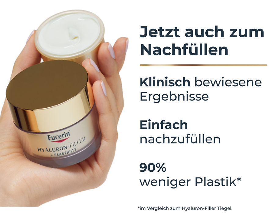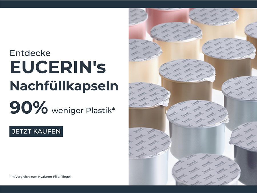 Die Nachfüllkapsel ist mit allen Eucerin-Tiegeln kompatibel und reduziert den Plastikverbrauch um 90 %.