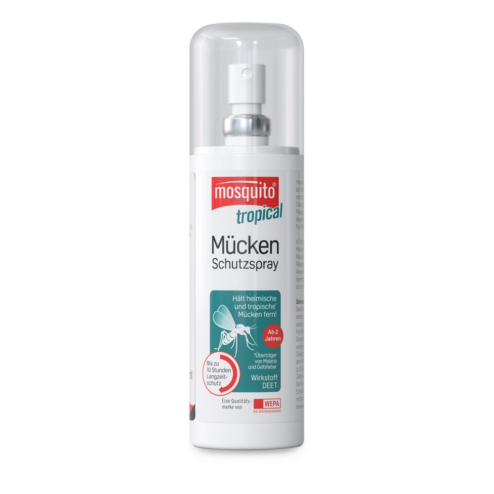 Speziell für Fernreisen in tropische Gebiete gibt es ein weiteres Mücken- Schutzspray in der mosquito Familie. Denn tropische Mückenarten wie die Anopheles-Mücke oder die Asiatische Tigermücke können zum Teil ernsthafte Erkrankungen wie Malaria oder Gelbfieber übertragen.Das hochwirksame mosquito tropical Mücken-Schutzspray sollte hier in keiner Reiseapotheke fehlen.