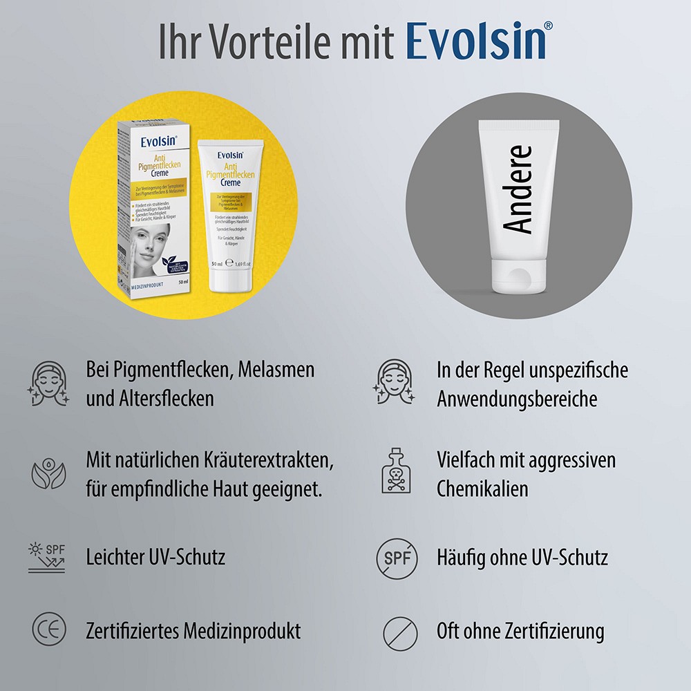 EVOLSIN ANTI PIGMENTFLECKEN CREME ist ein Medizinprodukt.