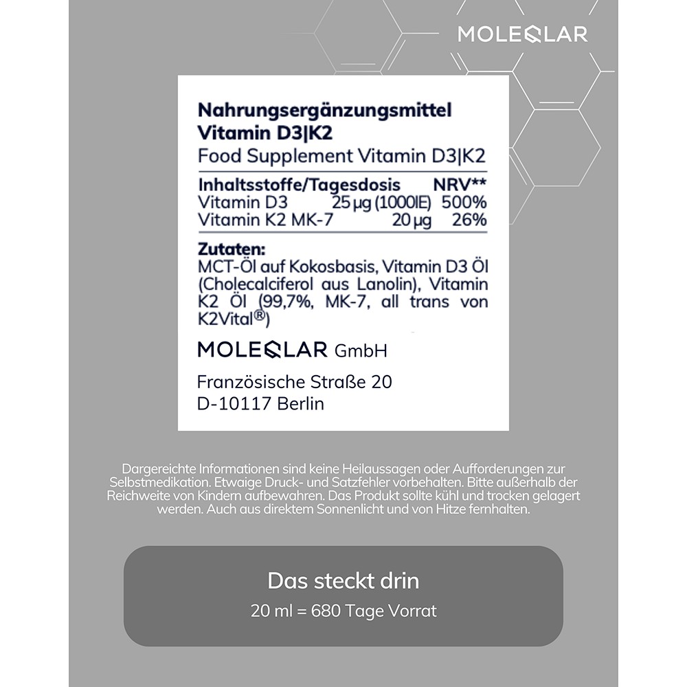 MOLEQLAR Vitamin D3/K2 1000 I.E.+20 µg Tropfen 20 ml