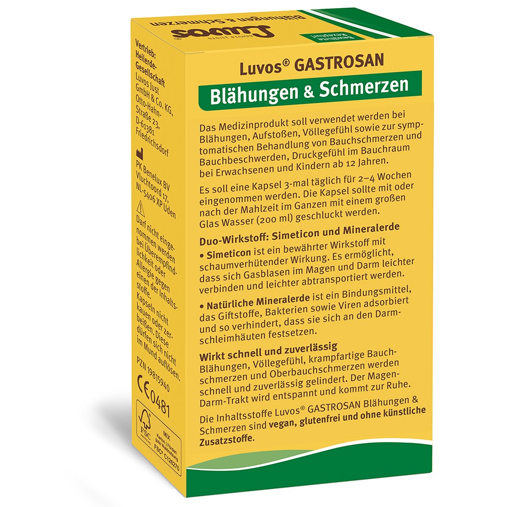 FÜR EINEN BEFREITEN ALLTAG: Blähbauch ade. Luvos-Gastrosan bringt spürbar, schnelle Linderung. Beide Wirkstoffe, sowohl Simeticon als auch Mineralerde, werden dabei nicht vom Körper aufgenommen, sondern unverändert wieder ausgeschieden. Für ein gutes Bauchgefühl.