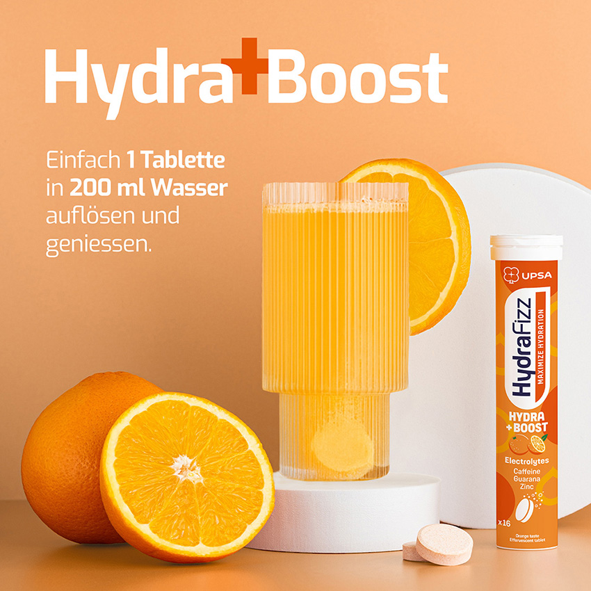 | Ausreichend zu trinken und Elektrolyte zuzuführen unterstützt Leistungsfähigkeit und Wohlbefinden – im Alltag ebenso wie rund um Sport. Bei höheren Temperaturen oder körperlicher Anstrengung verliert der Körper über Schweiß Flüssigkeit und Mineralstoffe; bewusste Hydration hilft, den Flüssigkeitshaushalt im Blick zu behalten. Hydrafizz von UPSA setzt genau hier an: fruchtige Brausetabletten mit der bewährten Kombination aus Kalium, Natrium, Chlorid und Magnesium sowie Glukose, angenehm im Geschmack und ohne künstliche Farbstoffe oder Aromen. Jede Tube enthält 16 Brausetabletten – handlich für Tasche, Rucksack oder Schreibtisch. |
