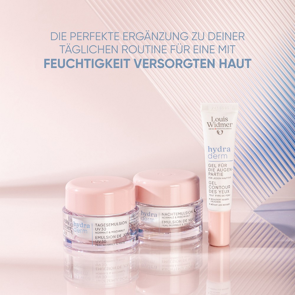 Das hydraderm Gel für die Augenpartie eignet sich für jeden Hauttyp. Es wird morgens und /oder abends auf die Augenpartie aufgetragen und leicht eingeklopft. Das erfrischende, nicht fettende Gel zieht sofort ein und kann unter dem Make-up verwendet werden. Für die Intensivpflege der Augenpartie, speziell während der Nacht, empfehlen wir die regenerierende proderm Creme für die Augenpartie.