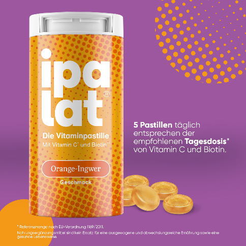 Tu dir etwas Gutes – ipalat Die Vitaminpastille mit Vitamin C, Biotin und ausgewählten Pflanzenextraktenipalat Die Vitaminpastille auf einen Blick