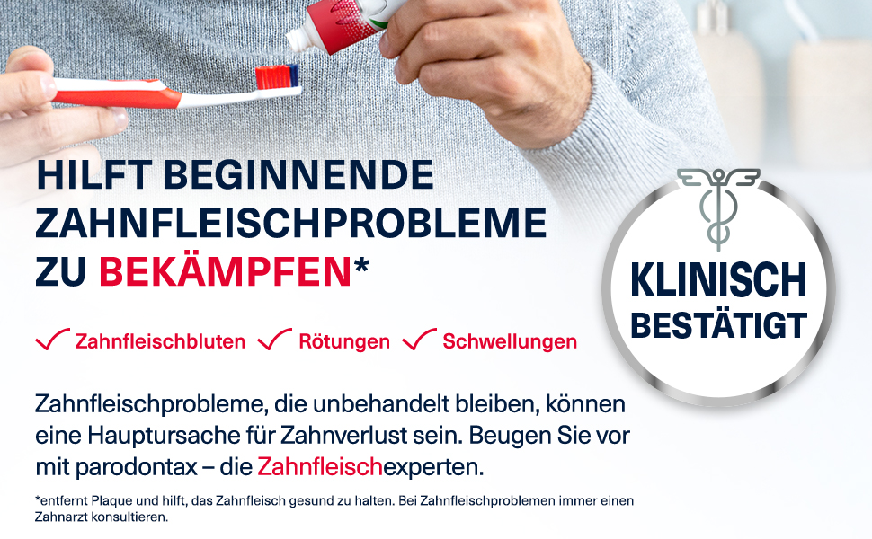 Parodontax ist die von Zahnärzten meistempfohlene Marke bei Zahnfleischproblemen in Deutschland***. Die Parodontax Original tägliche Zahnpasta wurde speziell entwickelt, um dazu beizutragen, Zahnfleischbluten zu reduzieren und vorzubeugen. Sie hilft, das Zahnfleisch gesund und die Zähne stark zu halten.