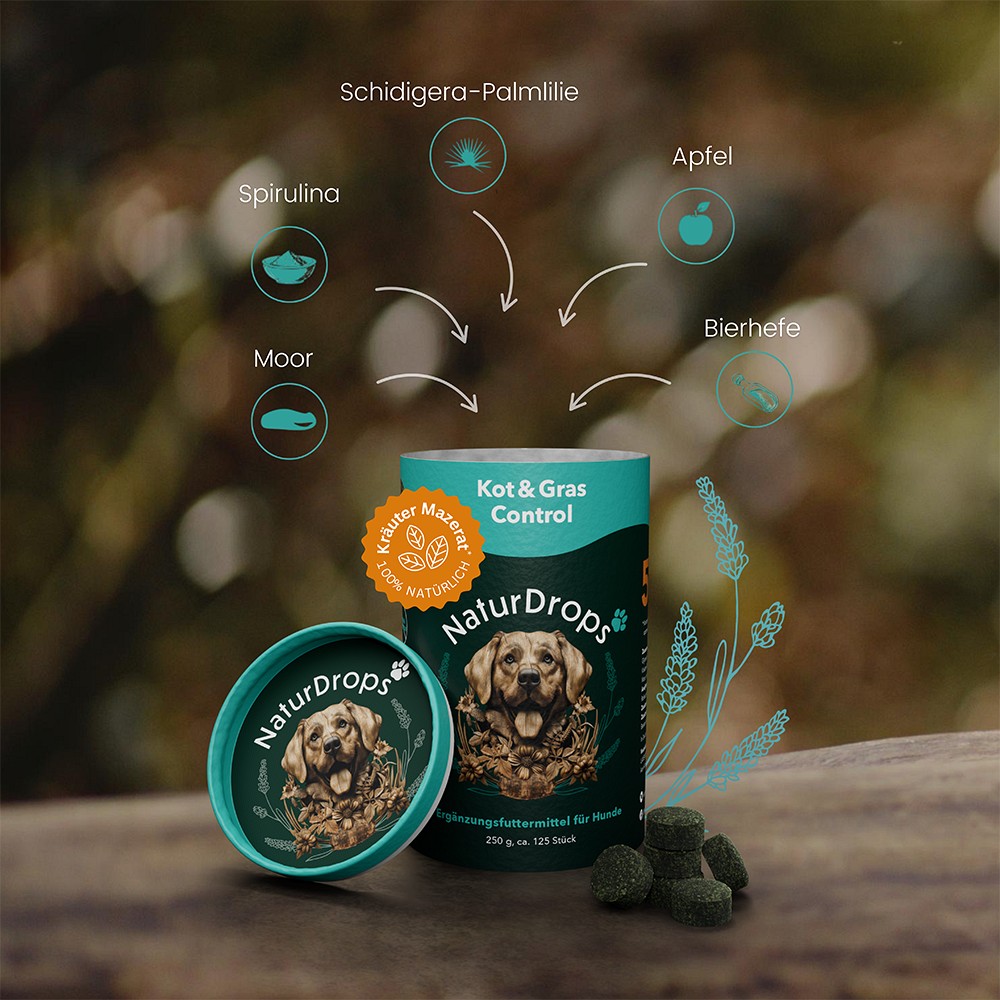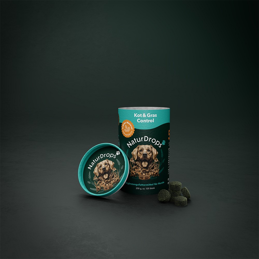 NATURDROPS Kot & Gras Control Erg.Futterm.f.Hunde 250 g