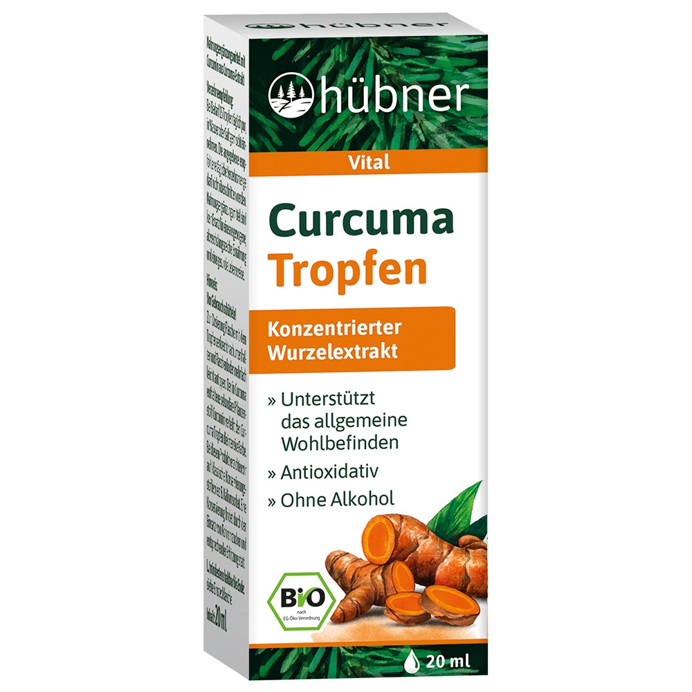 Curcuma- und Curcumin-Extrakt in flüssiger Form mit antioxidativer Wirkung zur Unterstützung des Wohlbefindens.- Aus Curcuma-Extrakt, -Wurzel und -Presssaft in BIO-Qualität
