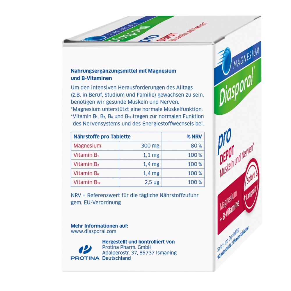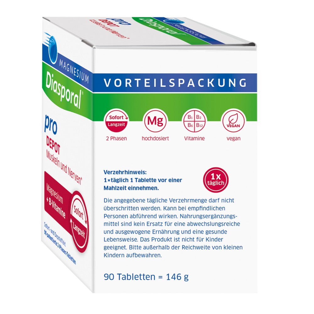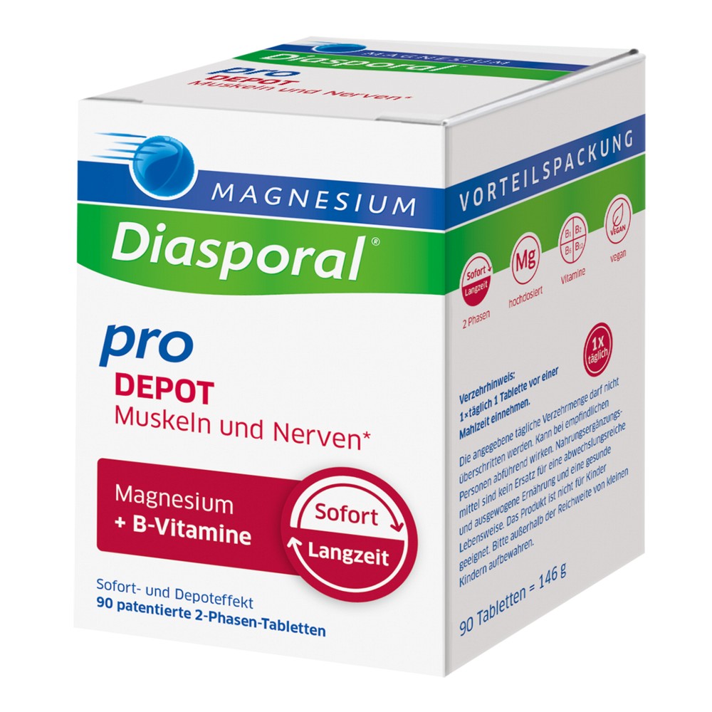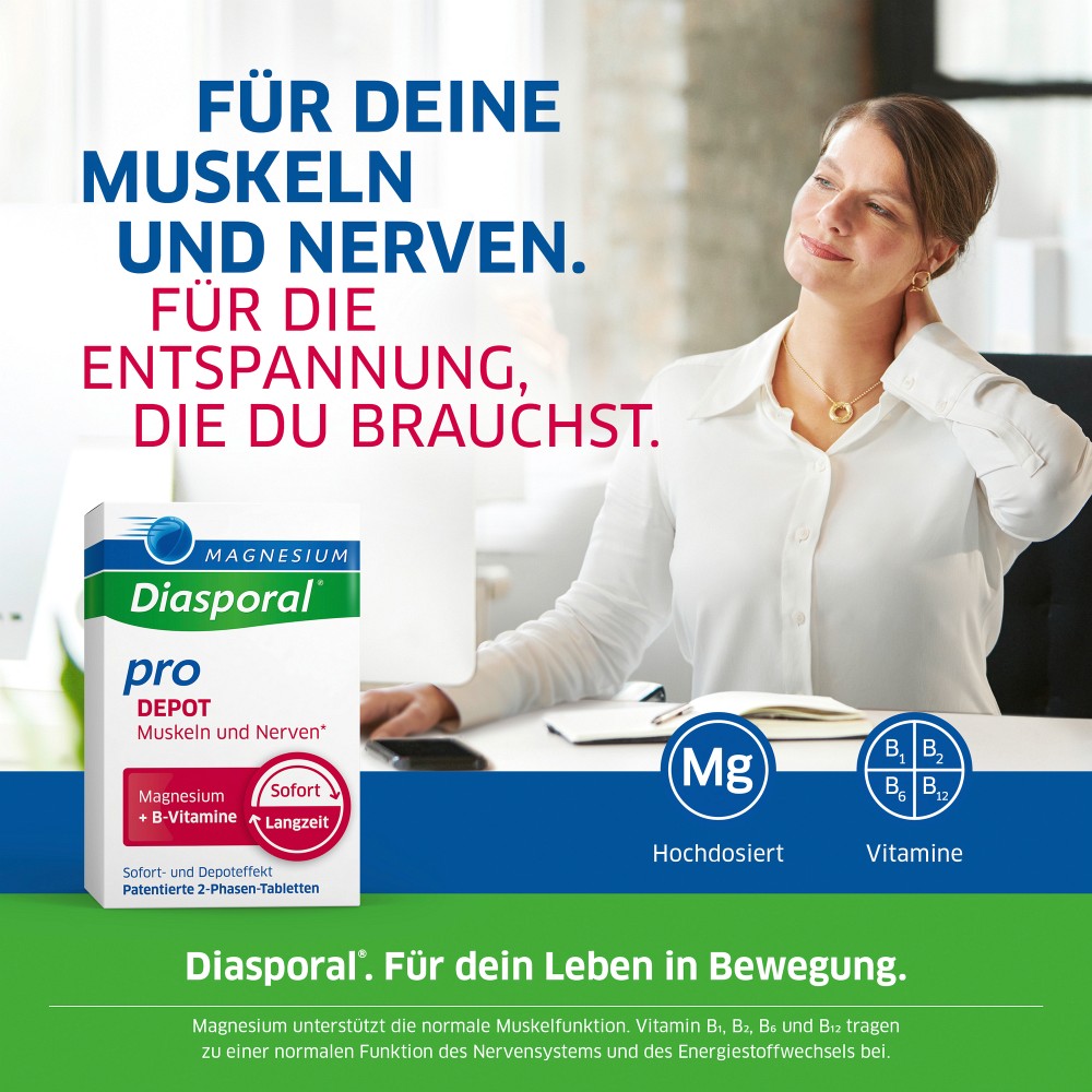 Um den intensiven Herausforderungen des Alltags (z.B. in Beruf, Studium und Familie) gewachsen zu sein, benötigen wir gesunde Muskeln und Nerven. Hierzu leistet Magnesium-Diasporal Pro DEPOT Muskeln und Nerven einen sinnvollen Beitrag: