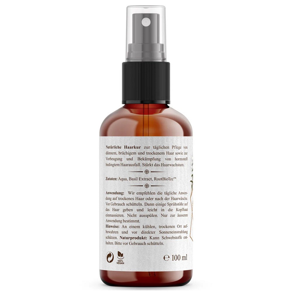 Vor der Anwendung solltest Du die Flasche gut schütteln. Du kannst die Basilikum-Extrakt Haarkur sowohl auf trockenem Haar als auch nach der Haarwäsche verwenden. Sprühe dazu einige Stöße direkt auf Haar oder Kopfhaut und massiere das Produkt sanft ein. Ein Ausspülen ist nicht erforderlich, sodass die Wirkstoffe optimal einziehen können. Die leichte Textur zieht schnell ein und hinterlässt weder Rückstände noch ein beschwerendes Gefühl. Für bestmögliche Ergebnisse empfehlen wir die tägliche Anwendung.INCIs