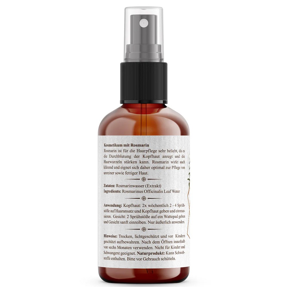 In der Naturkosmetik wird Rosmarin seit Langem geschätzt, besonders bei fettiger und unreiner Haut, da er für eine sanfte Klärung und ein frisches Hautgefühl sorgt. Auch in der Kopfhautpflege ist es beliebt: wenige Sprühstöße, sanft einmassiert, genügen für ein leichtes, vitales Gefühl. Das Extrakt ist frei von Farb-, Duft- und Konservierungsstoffen und enthält nur das Wesentliche, ohne unnötige Zusätze.