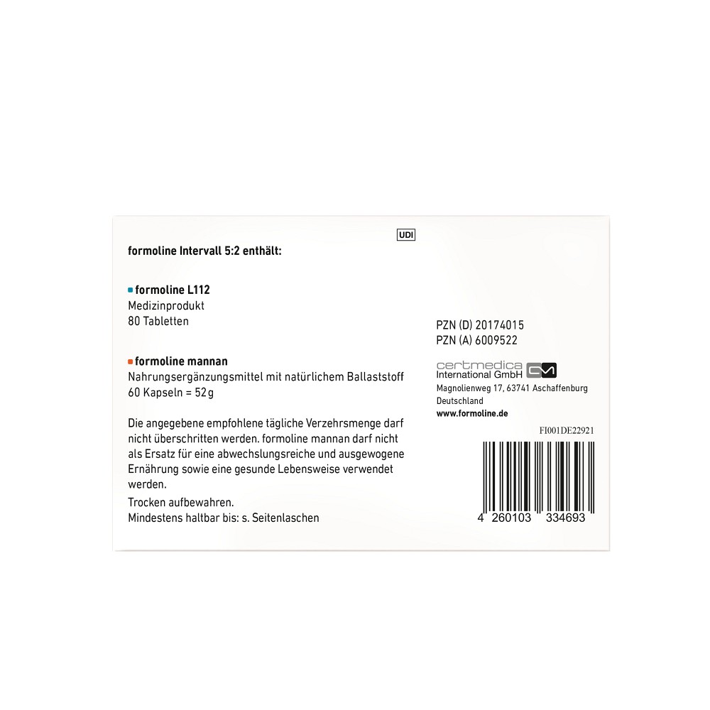 Die innovative Kombipackung aus formoline L112 und formoline mannan begleitet Sie vier Wochen lang beim Intervallfasten und unterstützt Sie gezielt an Essens- und Fastentagen.