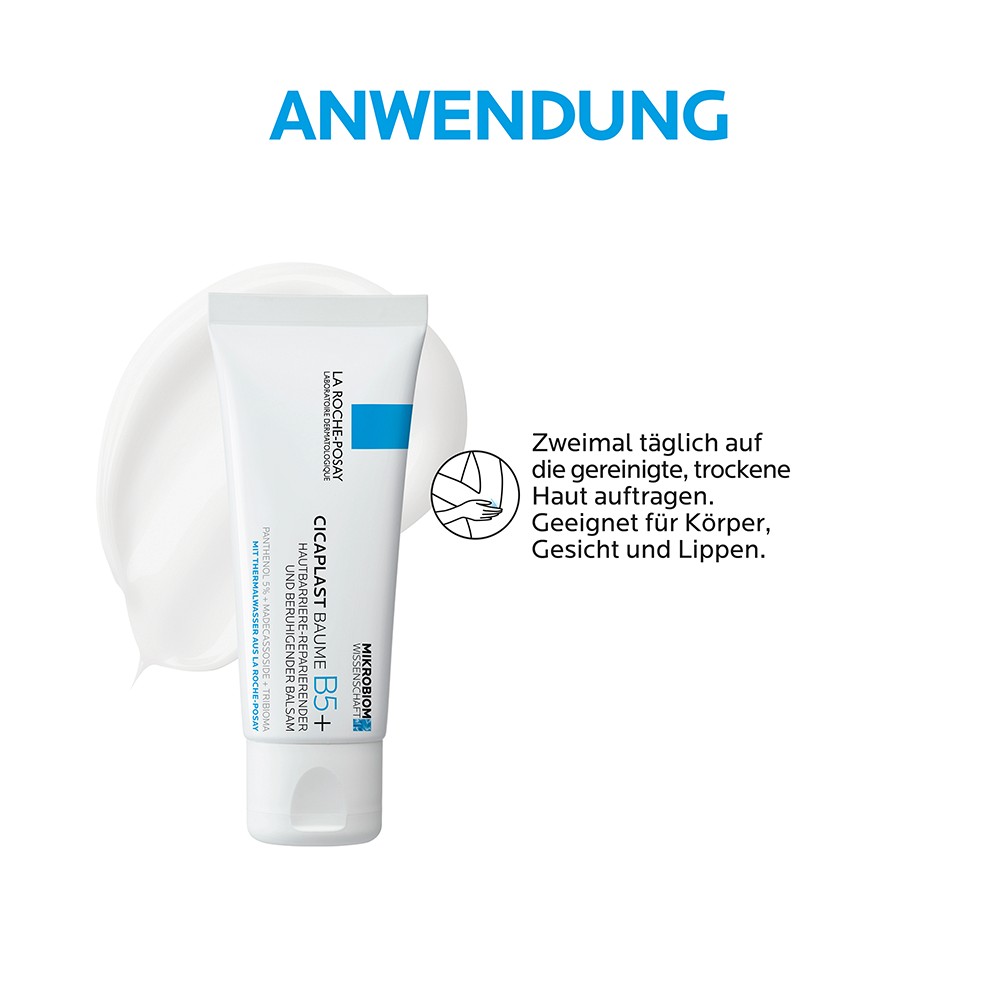 La Roche Posay CICAPLAST Baume B5+ für irritierte Haut kann bei verschiedenen Hautreizungen angewendet werden. Dabei eignet sich die reparierende Wundsalbe für gereizte Haut am Körper, im Gesicht und an den Lippen bei Erwachsenen, Kindern und Babys.Vor der Verwendung sollte die Haut gereinigt werden (wir empfehlen die Cicaplast B5 Lavant) und trocken sein. Anschließend kann die Creme auf die entsprechende Hautstelle aufgetragen, sanft verteilt und leicht einmassiert werden.