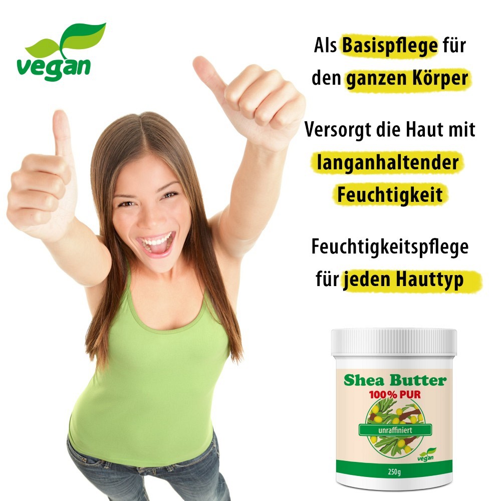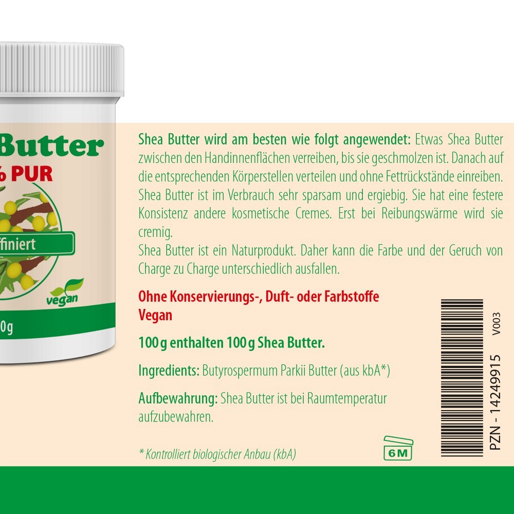 Unsere wertvolle Shea Butter unraffiniert 100% pur ist aus kontrolliert biologischem Anbau (kbA*) und beinhaltet keine weiteren Zusätze.Shea Butter ist ein hochwertiger, ausgezeichnet verträglicher und vielseitig verwendbarer Rohstoff und eines der wertvollsten Fette in der Hautpflege. Ihre natürlichen Bestandteile gleichen der hauteigenen Fettschicht. Dadurch können Nährstoffe von außen besser aufgenommen werden. Trockene, spröde, schuppige Haut wird so entspannt und bleibt elastisch. Durch ihre gute Rückfettung und ihr gutes Wasserbindungsvermögen hat Shea Butter einen hautglättenden Effekt.