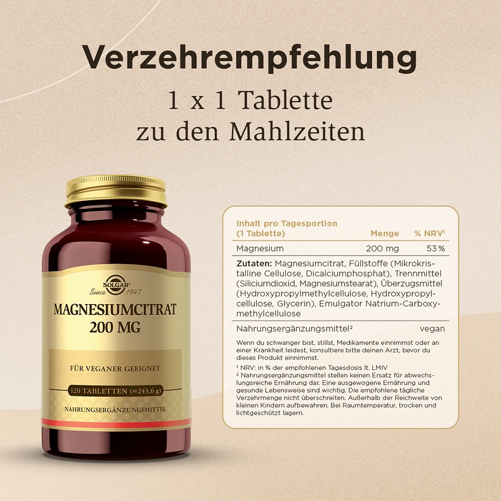 SOLGAR Magnesium Citrat 200 mg Tabletten 120 St