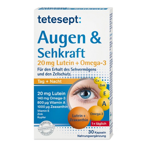 Unser Auge wird täglich stark beansprucht –. ob durch Arbeiten am Computer, langes Fernsehen oder unzureichende Beleuchtung. Um die Sehkraft zu erhalten, ist eine ausreichende Versorgung mit Nährstoffen wichtig.- tetesept Augen &. Sehkraft