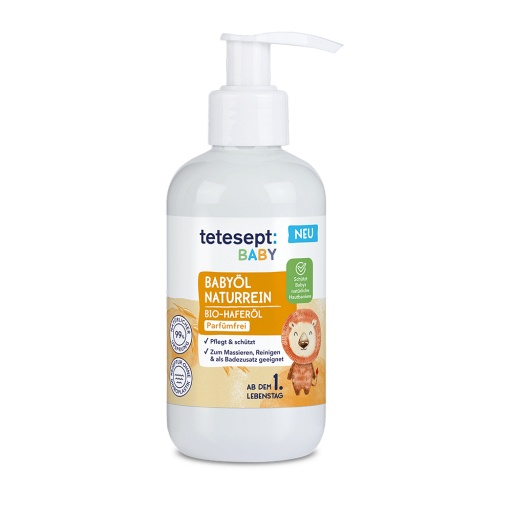 tetesept Baby Babyöl naturrein ist sehr gut hautverträglich und dank seiner wertvollen Ölkombination pflegt, bewahrt und schützt es die natürliche Hautbarriere, damit sich Dein Baby rundum wohlfühlen kann.- Babyöl naturrein