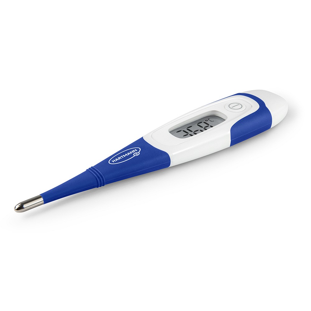 Das Thermoval flex Digital-Fieberthermometer von HARTMANN bietet eine schnelle, sanfte und präzise Temperaturmessung für die ganze Familie. Speziell für Babys und Kinder entwickelt, überzeugt das digitale Thermometer durch seine flexible Messspitze, die eine komfortable Anwendung gewährleistet. Mit einer Messzeit von nur 10 Sekunden liefert das Thermoval flex zuverlässige Ergebnisse bei rektaler, oraler oder Anwendung unter der Achsel. Dank der einfachen Handhabung ist es ideal für den täglichen Gebrauch zu Hause oder unterwegs.