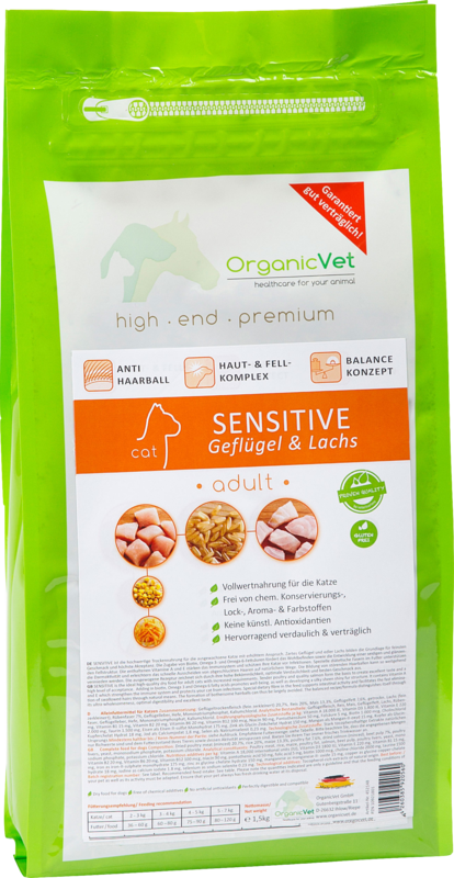 TROCKENNAHRUNG Sensitive Geflügel u.Lachs f.Katzen 500 g