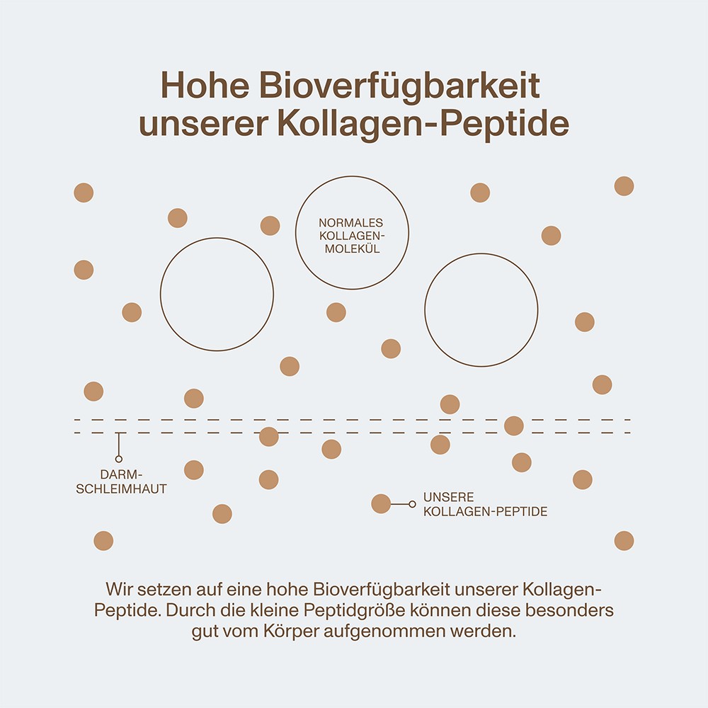 - Hydrolysiertes Kollagen Typ I und III für eine hohe Bioverfügbarkeit