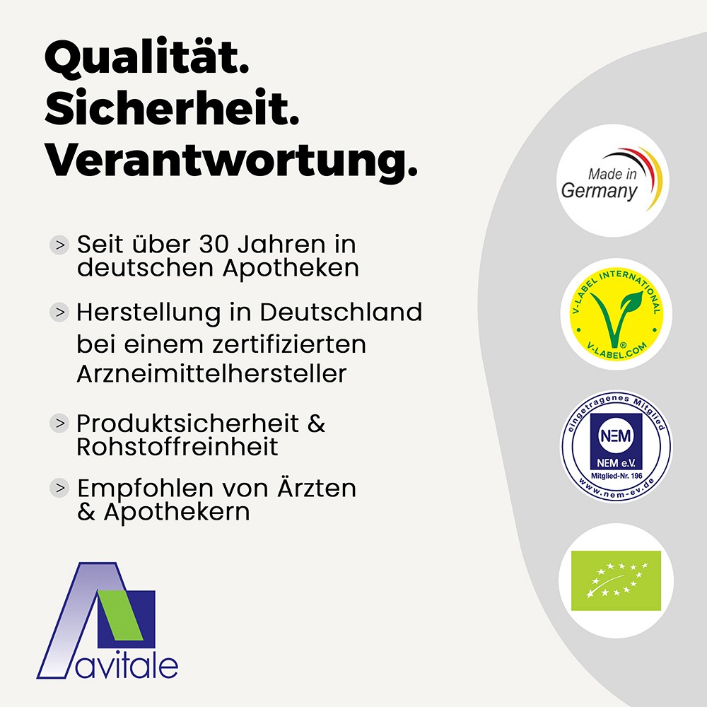 Avitale Vitamin B-Komplex Kapseln sind glutenfrei, lactosefrei, sojafrei sowie ohne Farbstoffe.