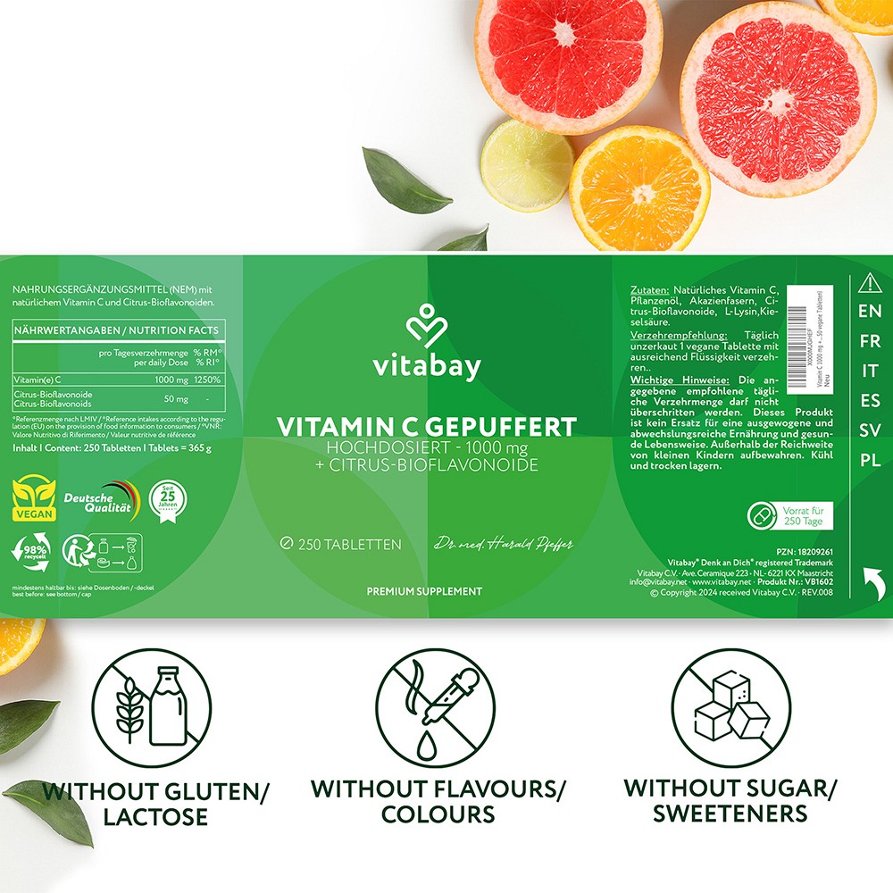 Der menschliche Körper hat nicht die Fähigkeit, Vitamin C selbst herzustellen und kann dieses, da es wasserlöslich ist, auch nicht speichern. Jeder Mensch ist deshalb auf die Vitamin C Zufuhr über die Nahrung angewiesen. Dieses Produkt liefert elementares Vitamin C für diejenigen, die eine hohe Dosierung bei bester Bekömmlichkeit benötigen. Säureempfindliche Menschen ziehen dieses Produkt wegen seiner problemlosen Aufnahme durch den Organismus vor.Die Time Released Formel von Vitabay sorgt dafür, dass dem Körper über viele Stunden hinweg eine ausreichende Menge an Vitamin C zugeführt wird. Bei der Einnahme von herkömmlichen Tabletten/Brausetabletten oder Pulver ohne Time Released Formel wird die gesamte Menge Vitamin C auf einmal an den Körper ausgeschüttet, wodurch es schon kurze Zeit nach der Einnahme wieder zu einer Unterversorgung des Körpers mit diesem lebenswichtigen Vitamin kommen kann.