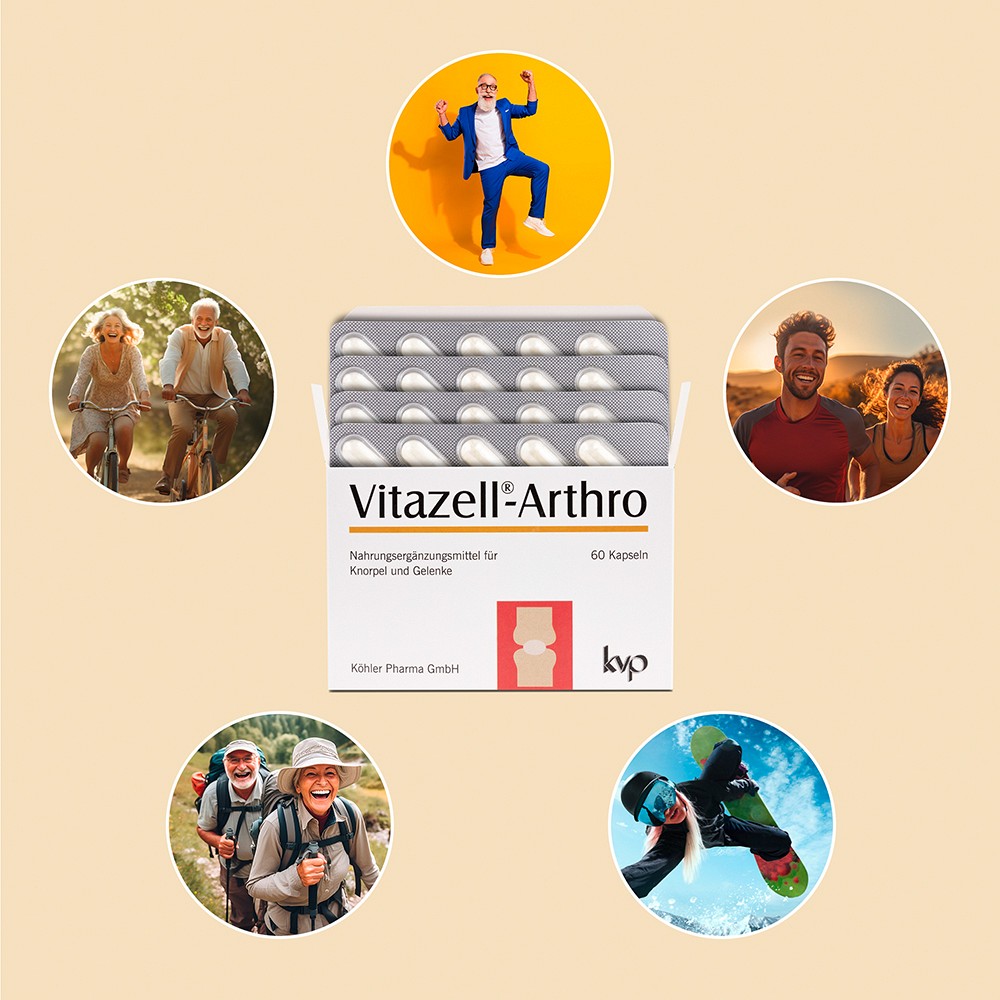 Das Nahrungsergänzungsmittel Vitazell®-Arthro enthält eine wertvolle Mikronährstoffkombination für Knorpel und Gelenke.Thema Gelenke: